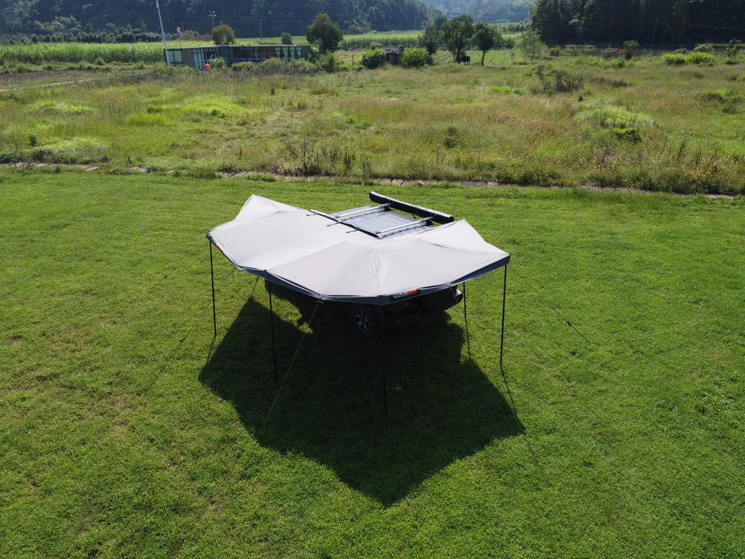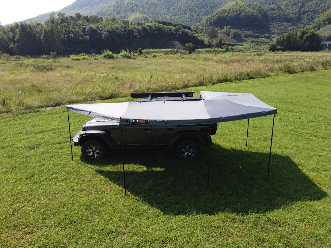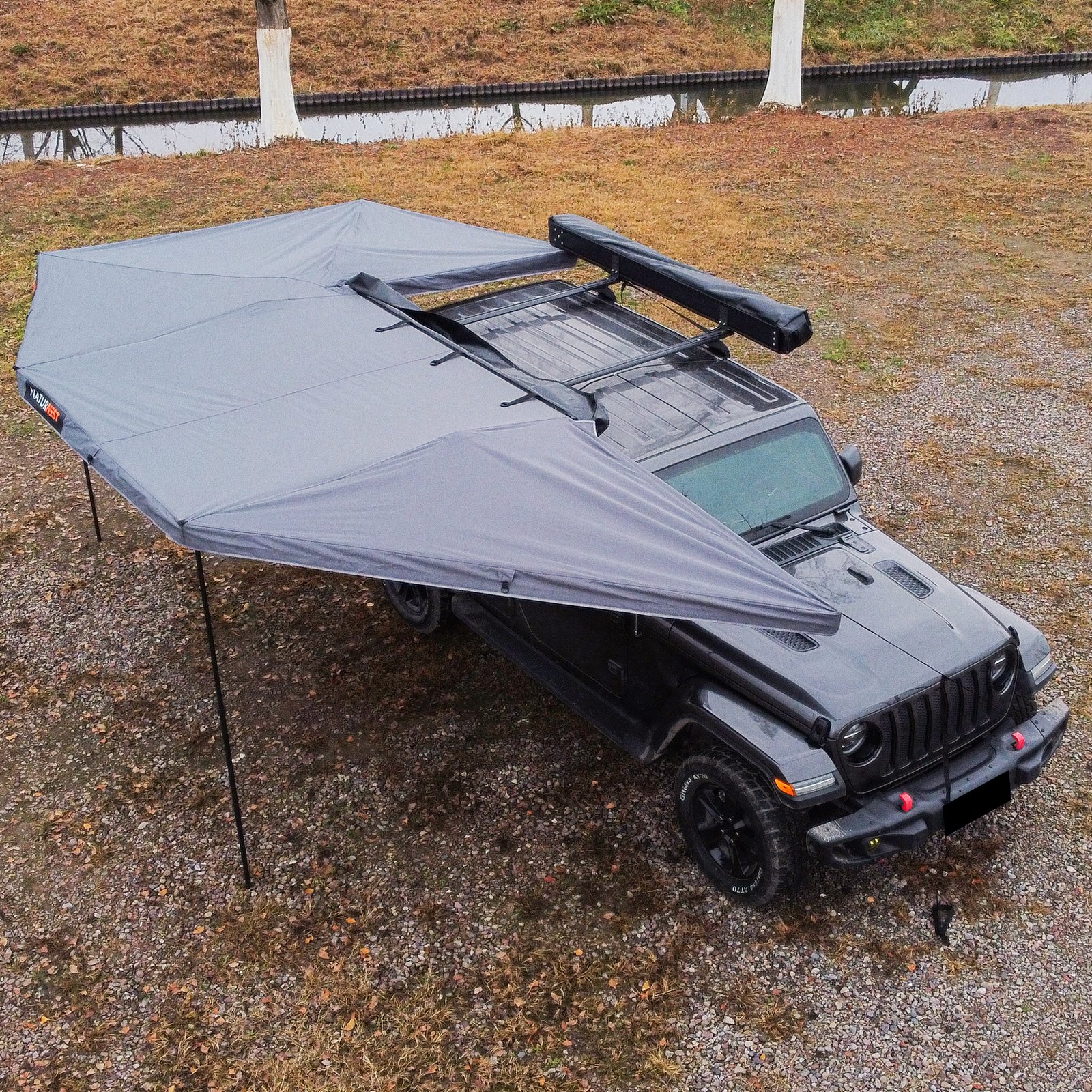 A 270-degree awning is an accessory that extends around the side and rear of a vehicle, providing ample shade and shelter. Key features include: