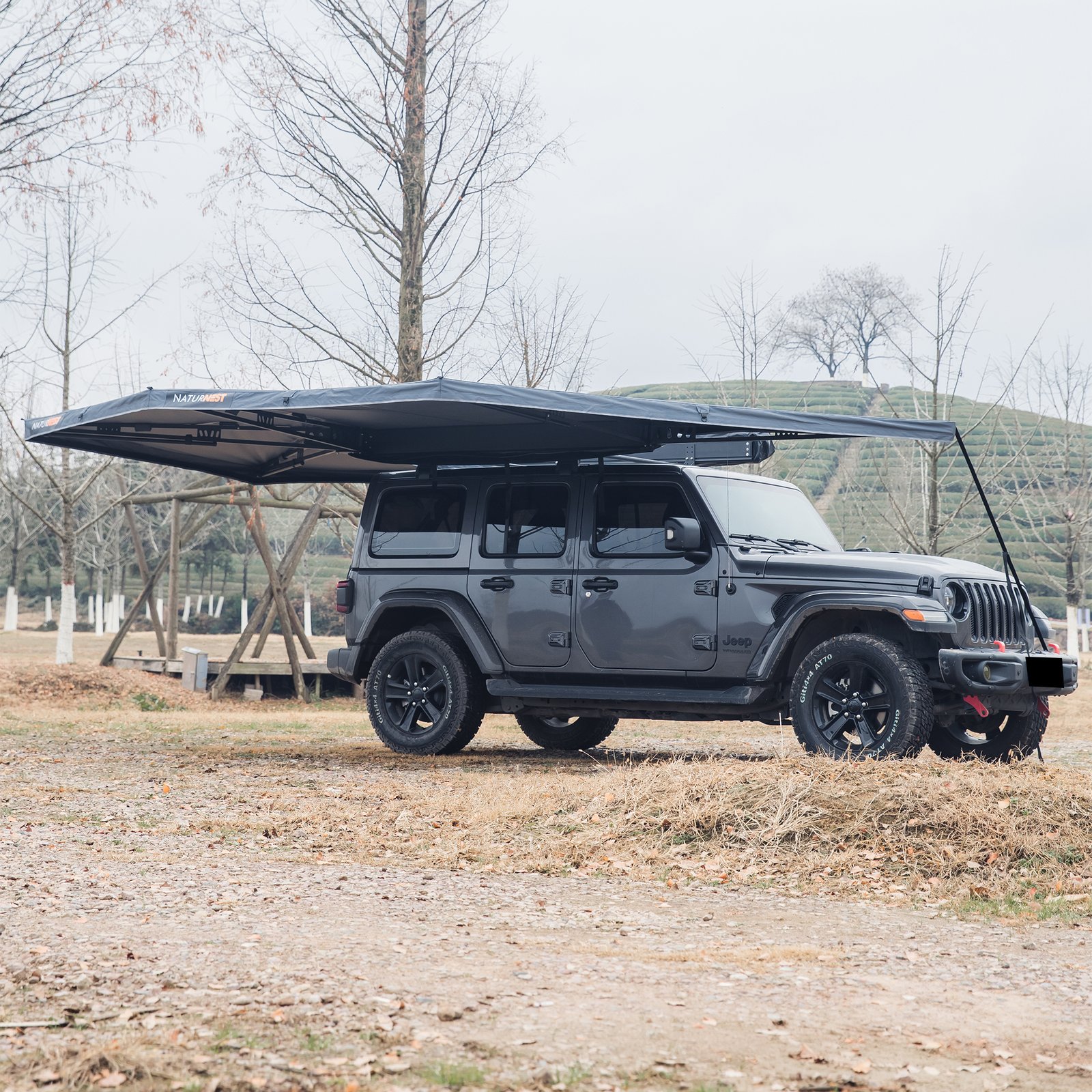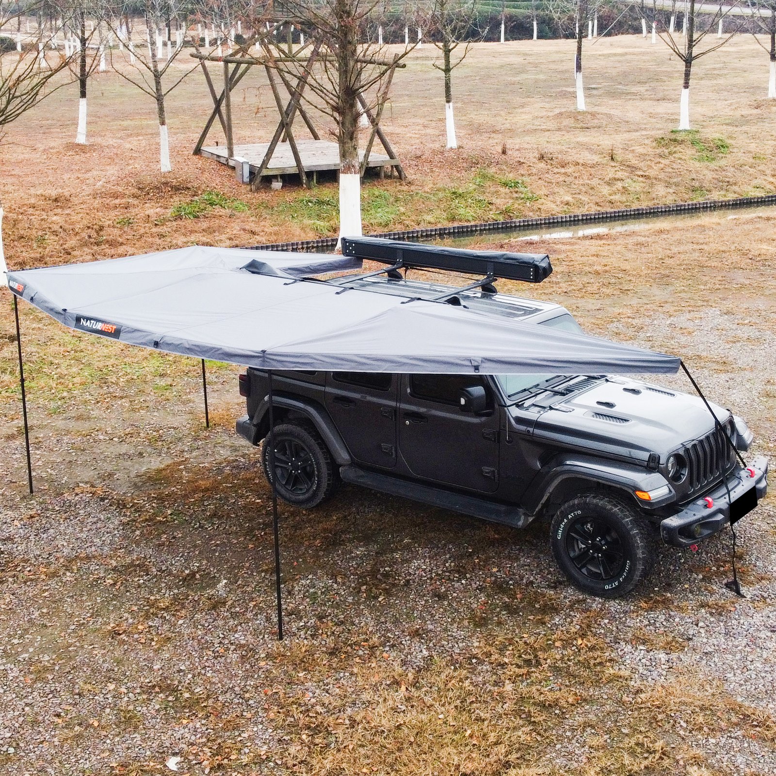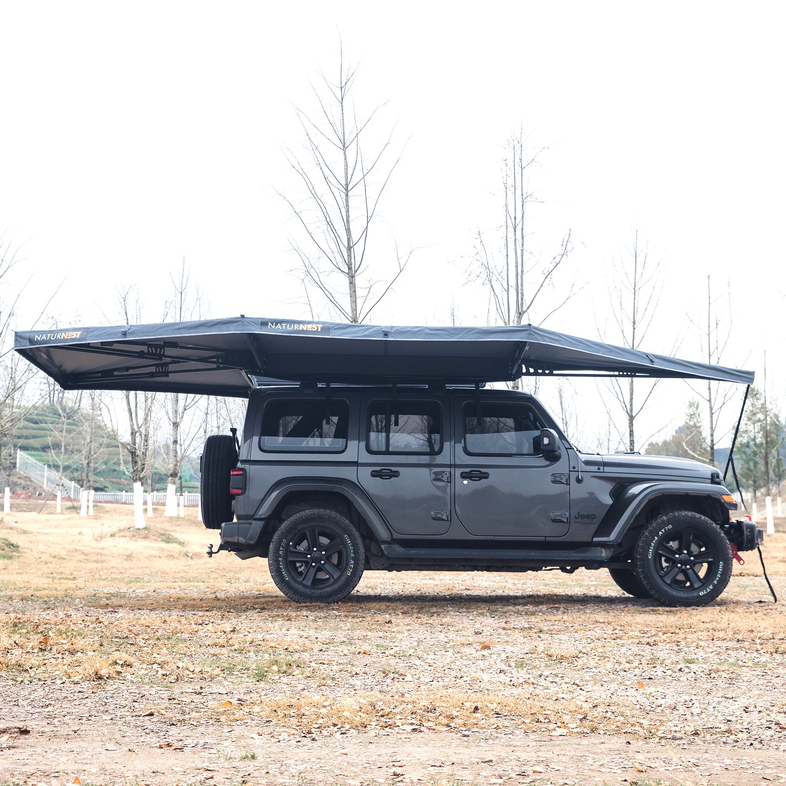 A 270-degree awning is an accessory that extends around the side and rear of a vehicle, providing ample shade and shelter. Key features include: