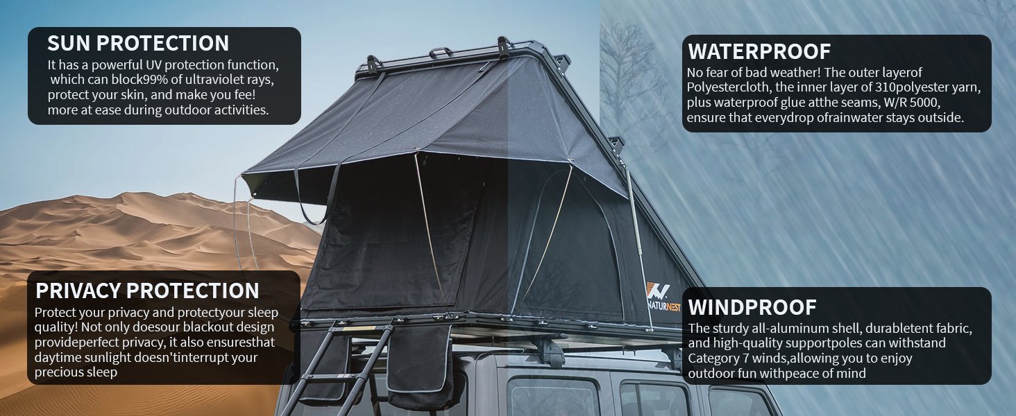 PPT roof top tent is a triangle rooftop tent is a type of camping tent that mount in the roof of the vehicle or on the bed of the truck, offering an elevated sleeping area. Its triangle shape provides aerodynamics and stability, making it ideal for overlanding and outdoor adventures. Theses tent are easy to set up and offer protection from wildlife and uneven ground, enhancing the camping experience.