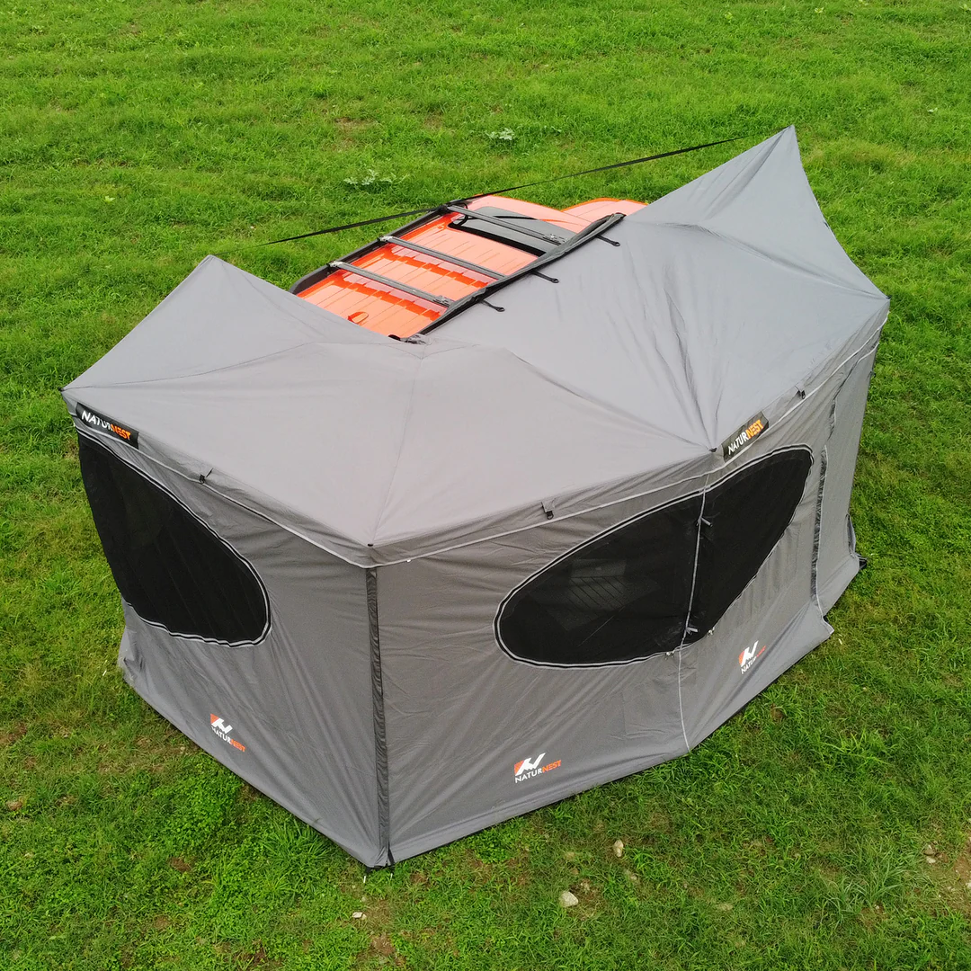 A 270-degree awning room is an enclosure that attaches to a 270-degree awning, creating additional sheltered space. Key features include: